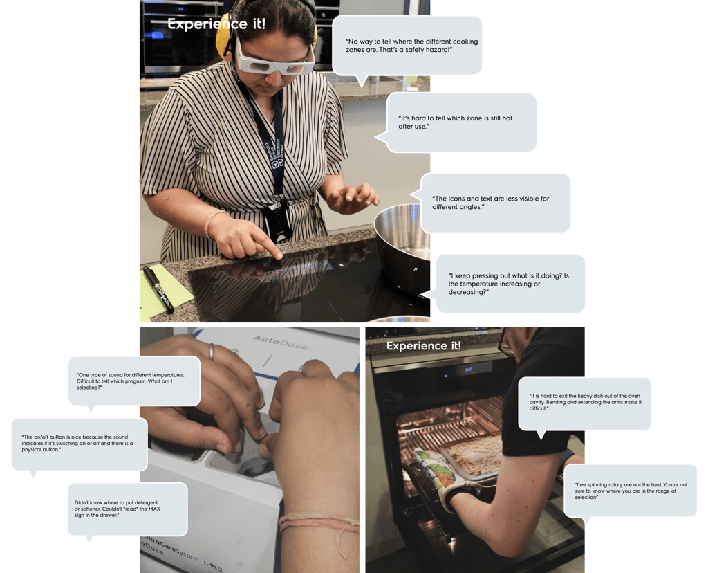 After interviewing people with disabilities and comparing their experiences with our products, I designed and led a workshop where our designers immersed themselves in using our appliances while facing similar challenges.