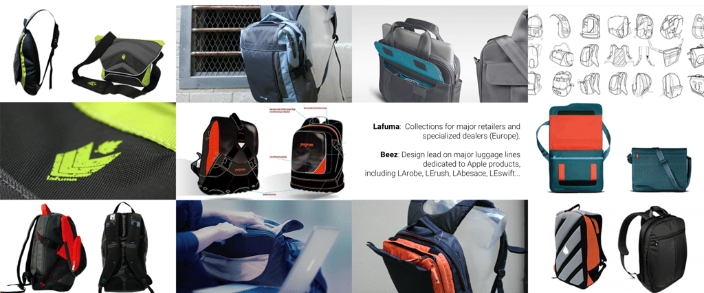 I worked as a soft goods designer for many years — first as an in-house designer at LAFUMA, and later as Creative Lead at BeeZ. I designed several bag collections for children (back-to-school ranges) and, with BeeZ, developed bags dedicated to the Apple brand.