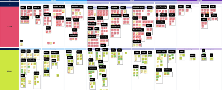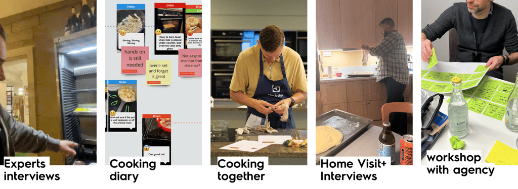 I designed and facilitated a user research exercise where teams in Stockholm and Rothenburg tried real-life cooking experiences — from classic hobs to sensors and fully assisted cooking — to uncover needs and challenges.