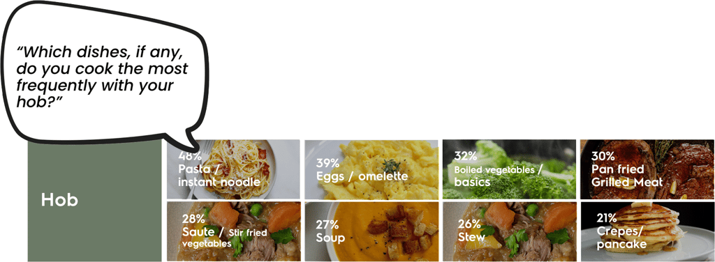 A quantitative survey was conducted with 3,000 participants across Germany, France, and Australia to explore current hob usage. The results showed that simple dishes and basic cooking techniques—particularly boiling and frying—were reported most frequently.